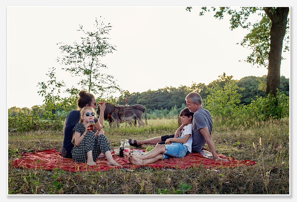 Een ezelwandeling is echt zo super leuk om te doen. Dus zijn we voor dit familie-uitje neergestreken bij de Ezelfarm Oisterwijk. In de wei mocht de familie zelf de ezels uitkiezen. De kinderen kozen voor Joepie en Iejoor. Ze namen ze mee naar de stal om ze te poetsen en op te zadelen en toen vertrokken we de mooie Brabantse natuur in. In het begin wilden de twee ezels nog wel eens uitproberen of ze aan de rand van de weg van het verse gras mochten snoepen, maar na enige duidelijkheid liepen ze lief en vrolijk mee. De kinderen vonden het heerlijk om de ezels te leiden en (onder de 40 kg) erop te rijden. Met een ezelwandeling genieten kinderen zeker van een mooi natuur-uitje. Onderweg werd het picknickkleed uitgebreid voor een lekkere onderbreking. De ezels vonden dat zeer interessant maar gedroegen zich beschaafd ;- ) Kijk hier naar een sfeerimpressie van dit gezellige uitje.