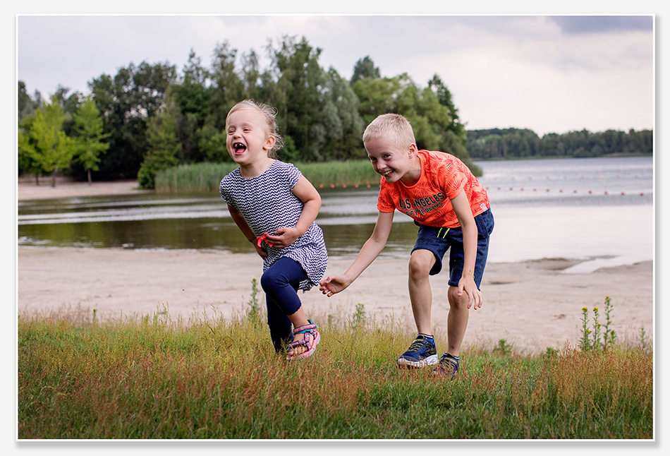 Familiereportage Engelermeer: Voor de derde keer had ik dit gezin voor mij camera, en wat geniet ik elke keer weer van hun vrolijkheid! De eerste keer nog met twee kinderen, en nu zie ik deze kanjers steeds verder groeien. Dit gezin maakt van de familiereportage elke keer een heerlijk familie-uitje. Het Engelermeer in het Brabantse Den Bosch is daarvoor een geschikte locatie. Ik was er nog niet eerder geweest, maar werd op slag heel blij van de veelzijdigheid van dit natuurgebied met strand, bos en speelgelegenheden. In het begin waren de wolken nog een beetje dreigend, maar zelfs een paar regendruppels mochten de pret niet drukken. Aan het einde van de fotoshoot werden we beloond met enkele zonnestralen. Ik heb weer intens genoten en kijk uit naar de volgende keer met dit gezin.